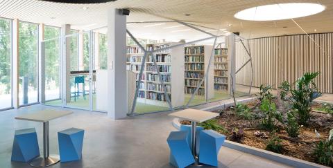 - de nombreuses ouvertures vitrées vers l'extérieur pour affirmer le lien avec le végétal et apporter plus de luminosité au bâtiment.